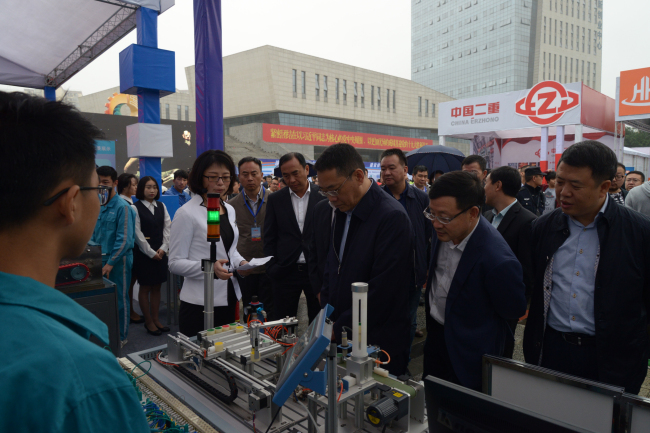 当日,由德阳市人民政府主办的“锻造大国工匠 筑梦智造之都”“技能德阳”博览会也在演艺中心盛大开幕。博览会现场,德阳安装技师学院向省市领导及市民重点展示了学院机械设备装配与自动控制、电气自动化设备安装与维修、汽车维修专业建设及技能人才培养培训成果。叶壮副省长,赵辉市长,戴允康厅长在参观博览会时,再次停驻学院现场展区,就电气专业特色建设,人才培养方向与规划,光机电仪器设备人才培育作用及智能制造特色等内容与学院院长梁义斌进行了再次的沟通与交流。
