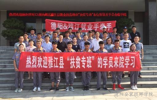 为了贯彻落实中央和省委“坚决打赢脱贫攻坚战”的决策部署,根据德阳市人力资源和社会保障局统筹安排。2018年8月20日,德阳市人力资源和社会保障局对口帮扶藏区甘孜州雅江县就业技能培训“汽修扶贫专班”在学院正式开班。来自高原藏区的25名藏族贫困家庭子女将在我院参加为期30天的汽车维修专业免费技能培训。