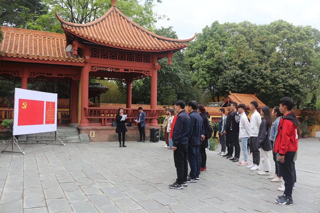 为党员过政治生日、赠送书籍、重温入党誓词;组织新团员进行入团宣誓,老团员重温入团誓词;学院副院长苏寒秋同志及工会主席陈云华同志为新团员佩戴团徽;苏院长寄语新团员和入党积极分子,提出殷切希望;齐唱共青团团歌,在纪念碑前合影留念;党员同志和学生们一起拿起工具,协助纪念馆打扫卫生,清除水沟垃圾······
