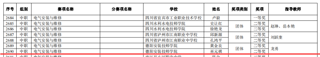 “电气安装与维修”“二等奖”选手合影