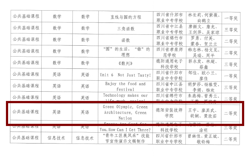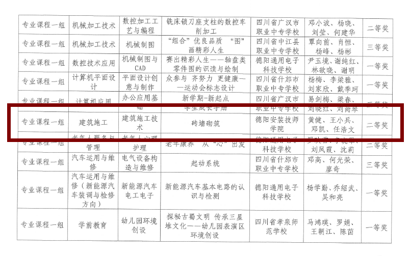 在日前公布的2022年德阳市中等职业学校教师教学能力大赛获奖名单中,学院荣获一等奖1个,二等奖3个,三等奖2个。