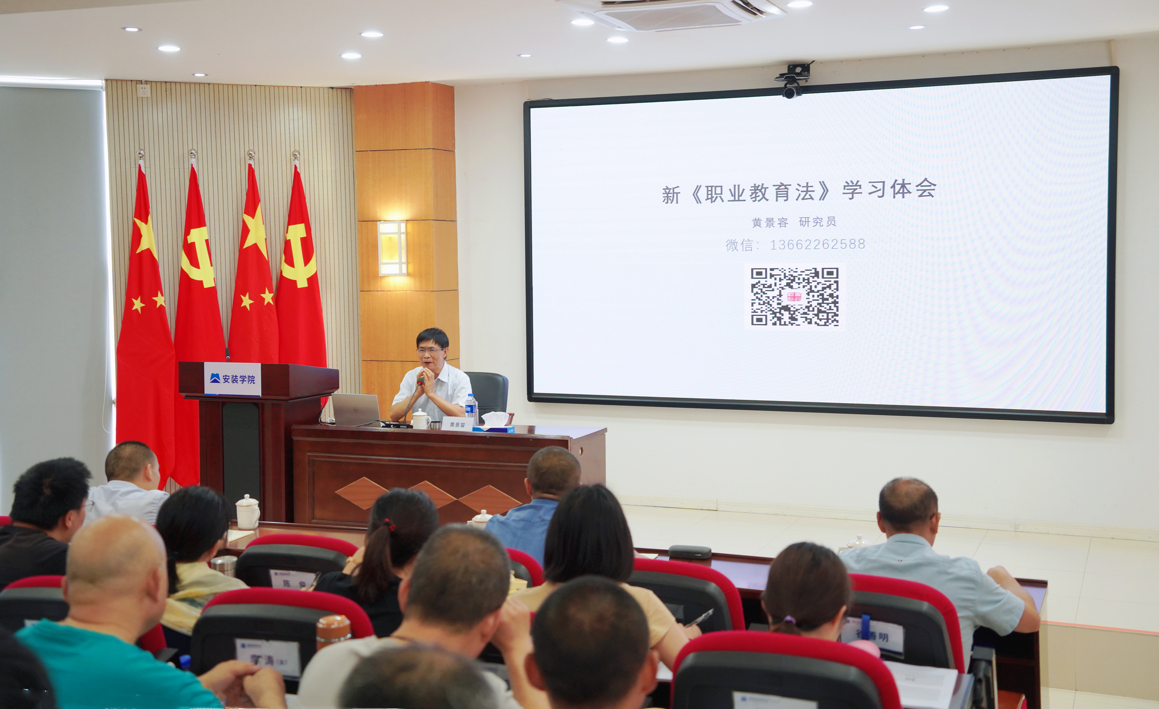 为深入贯彻落实习近平法治思想,深入学习全国职业教育大会精神,做好新《职业教育法》普法工作,根据学院2022暑期教职工集中培训系列活动安排。7月5日,学院邀请人社部技工教育专家、人社部国家级高技能人才培训基地项目评审专家黄景容教授作“解读新《职业教育法》和《技工教育十四五规划》”专题讲座。学院党委书记、院长陈俊出席讲座,学院全体教职员工参加讲座。