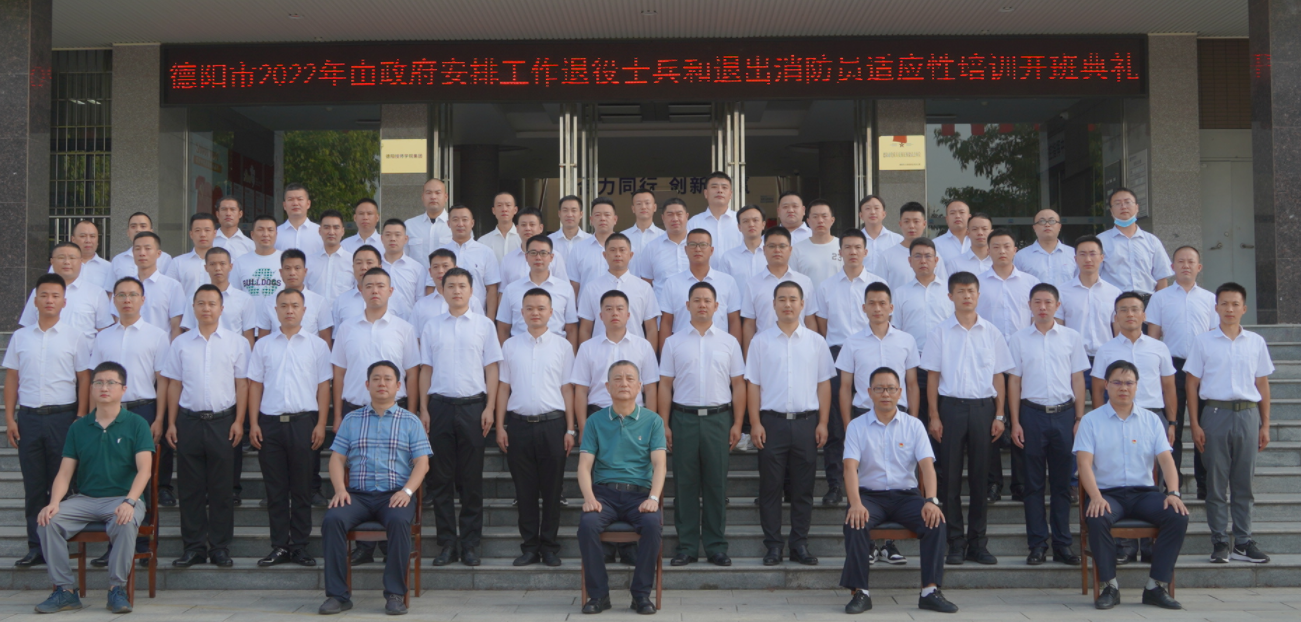8月22日上午,由德阳市退役军人事务局主办,德阳安装技师学院承办的德阳市2022年由政府安排退役士兵和退出消防员适应性培训正式开班。