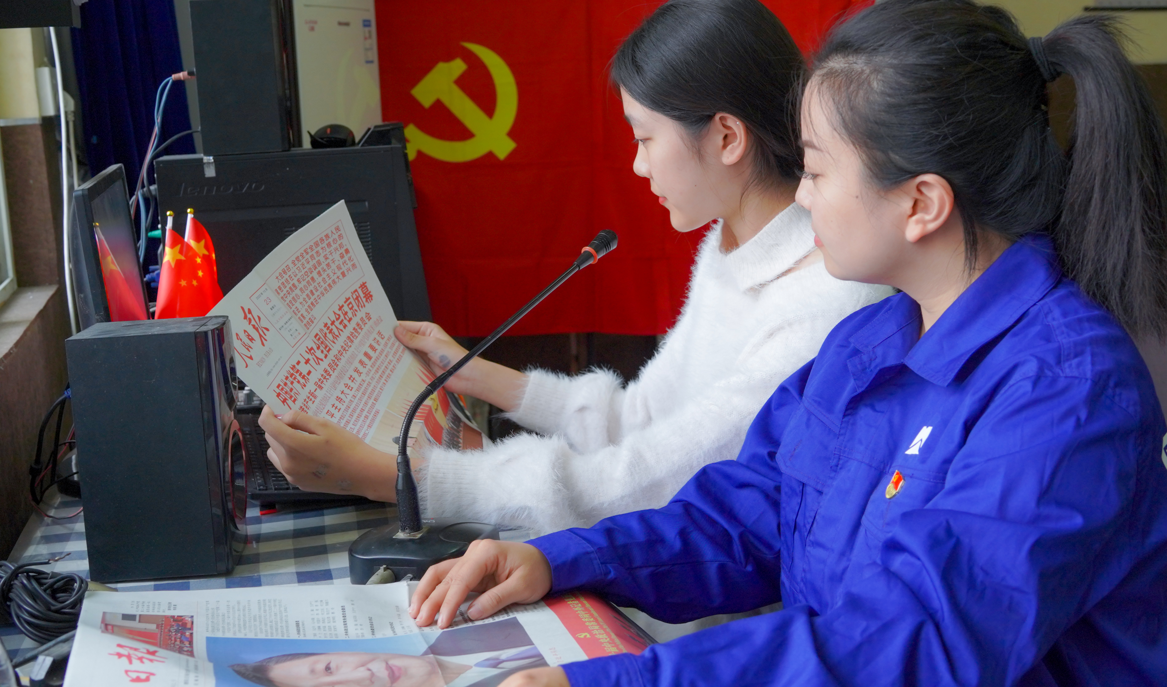 学院党员教师指导学院广播站学生宣传党的二十大精神