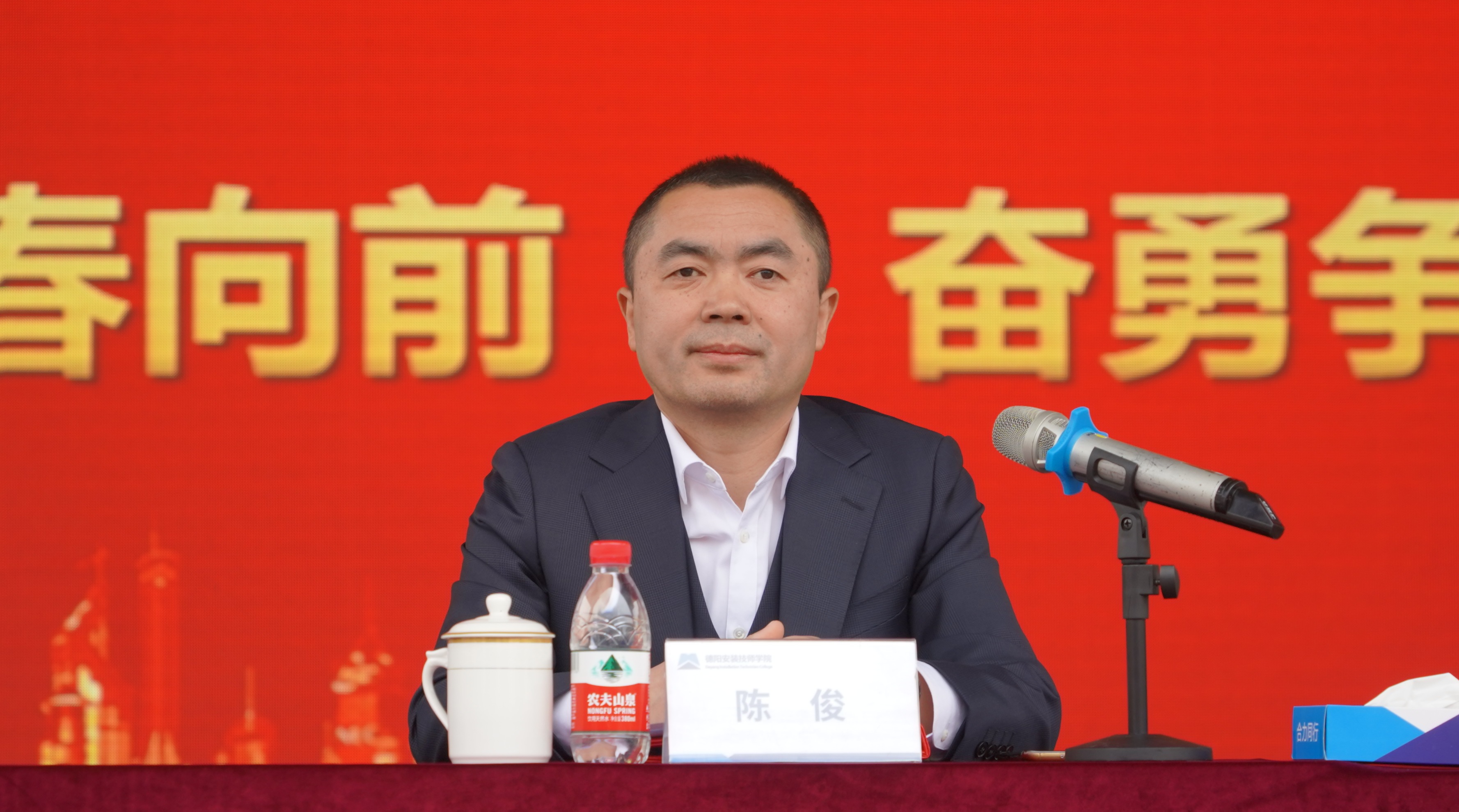 学院党委书记、院长陈俊深情寄语全体学生,鼓励广大青年学生勤奋学习,努力钻研,勇攀技能高峰,树立良好品德,培养优良情操,争做安院好青年,坚定理想信念,继承和发扬安院精神,成为社会主义合格建设者和可靠接班人。