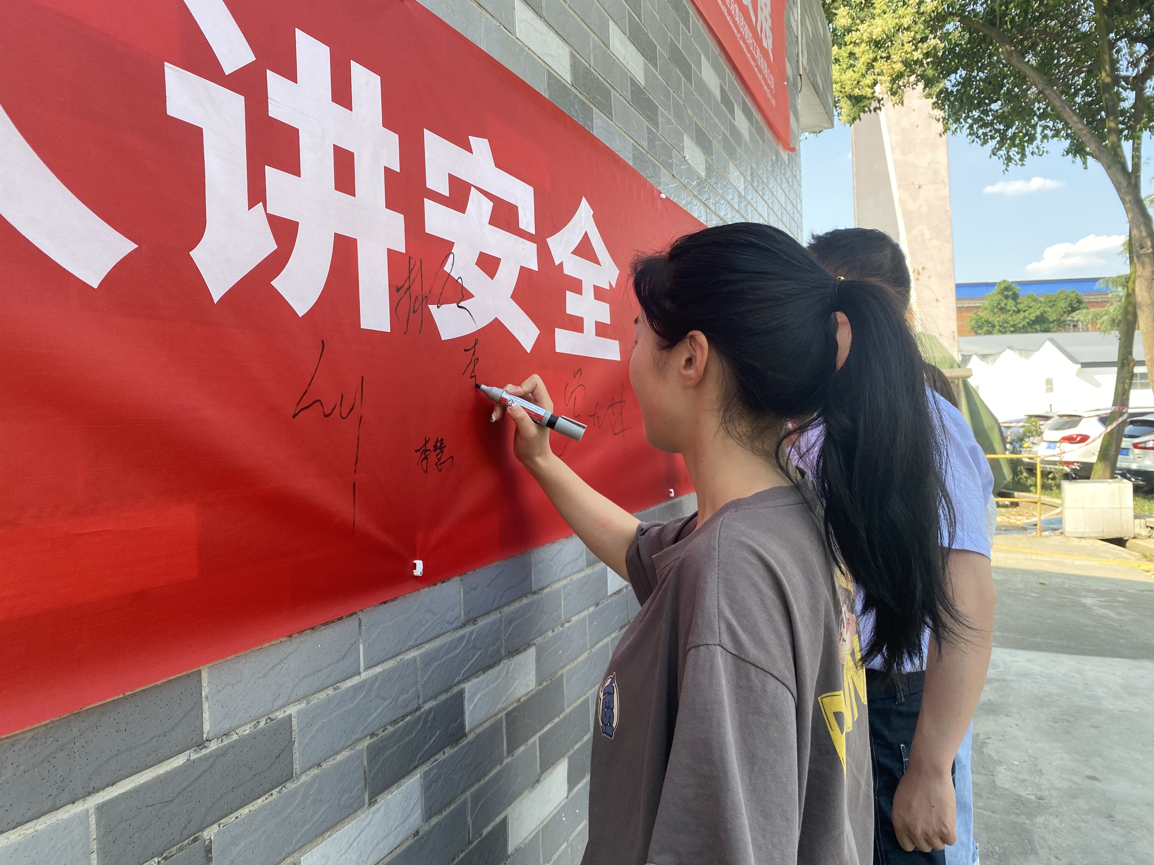 在公司执行董事刘辉的带领下,公司全体职工在“人人讲安全,个个会应急”的红色主题横幅上郑重签下了自己的名字,用实际行动践行安全承诺,为安全生产宣传添砖加瓦,使安全生产发展理念和安全法制意识更加深入人心,在公司营造起浓厚的安全生产文化氛围。
