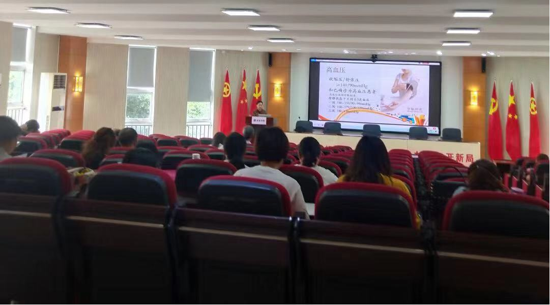 党主任从代谢综合征的概念入手,深入剖析了五高(高血压、高血脂、高血糖、高尿酸、高体重)产生的原因,运用视频、图片等方式为教职工们进行了生动地讲解,用幽默风趣的语言将一个个专业术语解读得通俗易懂,从科学的角度解答了如何在日常生活中做好“五高”预防和控制。讲座之后,还设置了现场咨询环节,党主任耐心地给老师交流答疑。活动中,30余名教师现场测量血压,现场咨询。