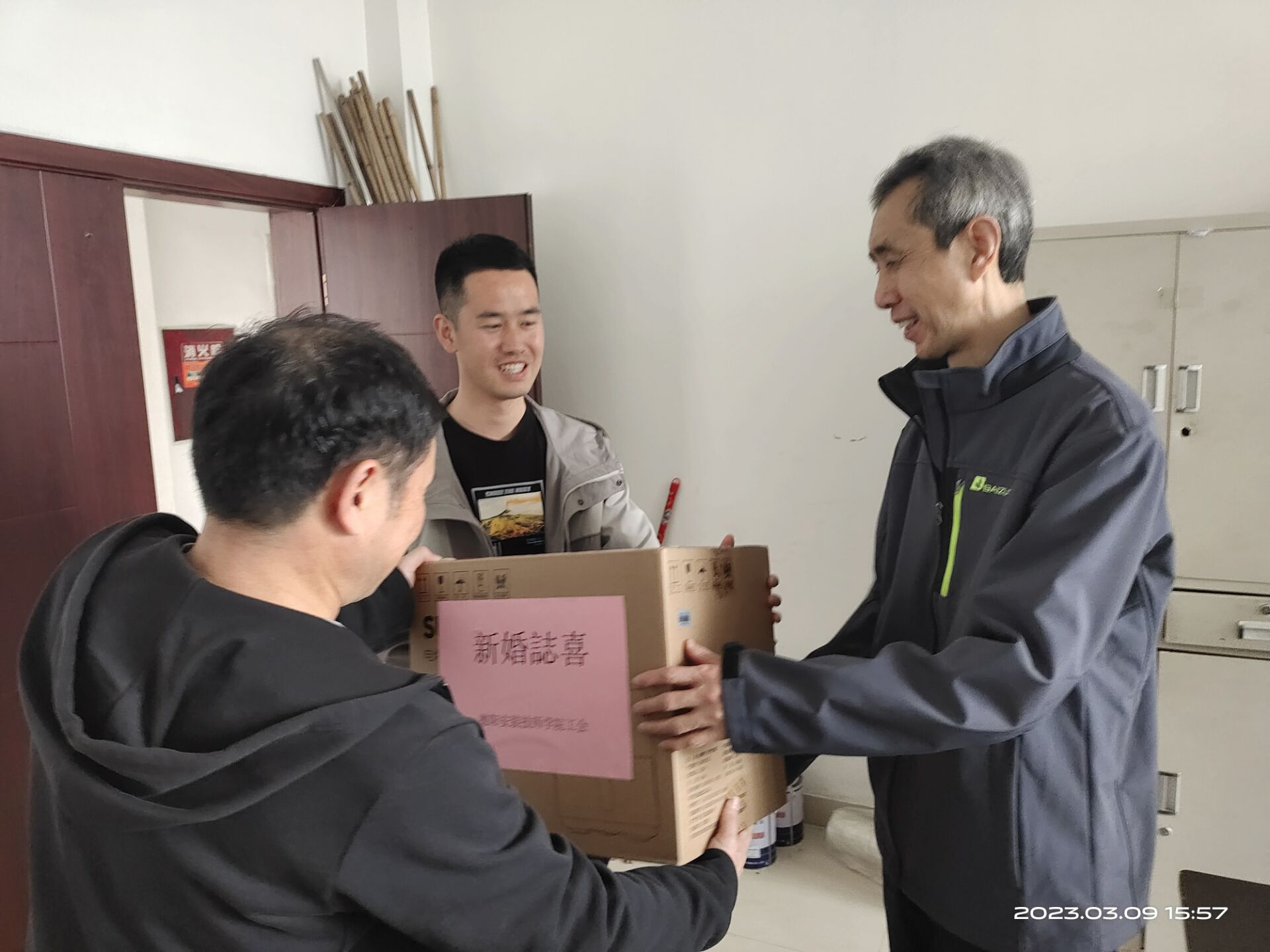为更好关爱员工,进一步增强员工的幸福感和归属感,3月9日,学院工会为新婚职工张正民老师送上新婚贺礼,工会主席王选明一行对新婚职工张正民老师在工作中的辛勤付出表示感谢,并赠送工会精心准备的礼物。充分体现了学院工会对教职工的人文关怀,让新婚职工切实感受到学院的关心和关爱。